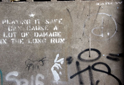 Banksy, Playing It Safe, Bristol"Playing it safe can cause a lot of damage in the long run" is reportedly one of Banksy's first ever stencils in Bristol. STATUS: unknown All photographs copyright artofthestate 2007 |