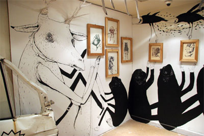 Santa's Ghetto 2006, Ericailcane wallEricailcane had spent a great deal of effort covering this area with drawings which worked well with the pictures on the wall. All photographs copyright artofthestate 2006 |