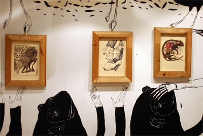 Santa's Ghetto 2006, Ericailcane wall 2Ericailcane had spent a great deal of effort covering this area with drawings which worked well with the pictures on the wall. All photographs copyright artofthestate 2006 |