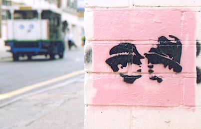 Police Officers, Leonard Street.Using pink and positioning faces this stencil implies there may be something more going between these two cops in Leonard Street.All photographs copyright artofthestate 2003 |