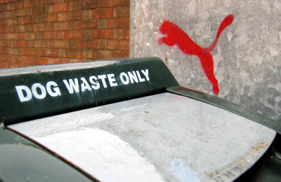 Puma stencil, LondonOf course the problem with guerilla marketing campaigns is that you can lose control of the brand image as this shot of the Puma leaping cat clearly shows. All photographs copyright artofthestate 2004 |