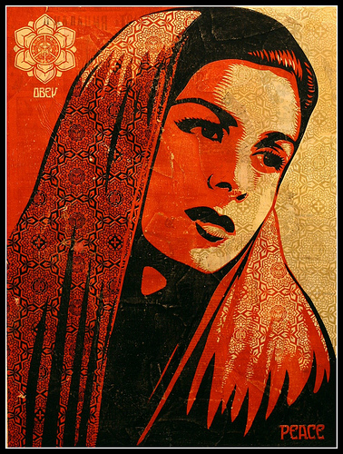 Shepard Fairey - Peace canvas.Shepard Fairey Peace canvas on display at the Stolen Space 'Nineteeneightyfouria' show in 2007.All photographs copyright artofthestate 2009 |