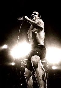 Rollins. What does Rollins think of his recent Sounds interview? Oh perhaps it was a little over the top. A minor band all of a sudden become very major " we have discovered this band"! I really don’t pay all that much attention to the press. We play music and don't dote on what the guy said. I mean the guy who interviewed me was really cool. He was obviously into what we were doing. Doesn't he get sick of doing interviews time and time again? No, I'm just into it that someone's into talking to me. Rollins is as prodigious writer as he is musician. What conveys what he feels the best - his writing or his music? I get off on the music much more, I get off on the physical release, I mean I don't do this before I write! (All the way through the interview he's doing basic yoga for tonight's gig). I write a lot and I do a lot of shows so one feeds the other> The best thing I've ever done for writing lyrics is doing a lot of writing. A lot of writing helps me learn how to use words concisely and to get feelings across better. Lyrics are really important but you can only get a few words in a song unless you are doing some prog rock opera. You've got a few verses and you've got to encapsulate the whole thing and to me a good song gets the idea across in a few words and doing a lot of writing has helped me do that. Would he think a lot of people would take much notice of the lyrics? Surely they just come to the gig to sweat it out and don't give a damn what any ones saying? That's up to them, they pay their money, they can do whatever they want. So do you think that many people who come to your shows would be interested in reading your books? Judging by book sales it would appear that way. Do you sell any of your books at shows? Not here, but in America we do. The only way I want them out in this country is to print them here and have the price be reasonable. I refuse to sell books that you would have to pay for if I imported them, that would be highway robbery. On account of, you import shit, tax it, it costs. I'm not going to charge you eight pounds for a book I charge 2 pounds fifty for in America. So, until I get someone to print them over here the only way you'll see one is if you come to America and get one. Sometimes I put them through the mail. I'm just not into charging people a lot of money. I like to keep my prices down. What does Rollins think of UK bands like the overtly political CRASS? Personally I always like Crass as a cool concept and the music kind of bored me. You know, nnmmmm, nnmmmm, with a guy spieling over the top of it. You listen to it once, but can you put it in a car stereo - no! Is there any UK bands he rates? Could he ever live here? No, absolutely not. I just can't take the weather! I don't buy any records from English bands really. We can't really rate any either at the present time. Obviously who in his right mind is interested in GENE LOVES JEZEBEL? A lot of cool stuff from here a yank would never get to hear and the same thing here. You're not going to hear a lot of cool stuff coming from America because it's only tiny labels. Some of the shit never even gets out of the local town it's in. That's what happens here in the UK too. Rollins was on the front page of Sounds but only a few shops stock his records and at a high price....It just came out on Fundamental so maybe the price dropped. We noticed that in America it was a lot more business like at shows with a lot more T shirts etc. Rollins replies: It's the only way we can make money, tours don't make money, T shirts make you break even. We sell T shirts 2 bucks cheaper than anyone I know. Hey, we're not objecting to you paying your rent, It's just the middleman who is ripping you off as well as the buyers. That's why we do a lot of things ourselves. We do the T shirts, we make up the screen, we get a company we know and print them ourselves. We ship them to an airport where we pick them up and we sell them, so there is no middleman. There is the printer and then there's us. It's direct. I'm interested in this. when I have a problem I generally try and work it out myself rather than ask other people. How does Rollins sort out his problems? I read that you pull them out of the back of your mind and wrestle with them. Do you ever talk them through with other people? No. I don't take much stock in that. There's only a few people that I discuss anything that bugs me with. And that's Lydia Lunch - because Lydia is one of the most livid people I've met in my life. She's incredibly smart and sometimes if I feel really bad I'll write her a letter and she'll call me on the phone and go "Well, Rollins, here's what I think", but I usually just keep things to myself - I think that's best. Given his love of the English weather how come Rollins has ended up doing some recordings in the UK? First time I recorded in the UK in '86 was because Chris lived out here and it was really cheap and I felt we'd go on a trip anyway so we did it out here. The second time was because the tour ended here, the studio was cool, we liked the engineer, we were right there so we said "OK, lets book it". We had a place to stay in Leeds at Chris's house. We did the whole thing from start to finish in six days. I heard Ian McKaye (ex Minor Threat front man) produced the album....We flew him out here and he met us in London, went back to Leeds, took a day off just to get practiced, listened to everything and pulled the songs apart. We then went into the studio, did the nine songs on the album, the three songs that are turning up on an e.p. soon. From start to finish it was about five, seven days. Just walked out with the edited master copy. The e.p. should be out on Rough Trade. Given your feelings on the DIY ethic - have you ever thought of doing your own label? Yeah, I'd really like to. The singles recorded. Now I need to do a charity gig to get some money to put it out so I can get some money for the charity! It's this thing I/m doing for batt