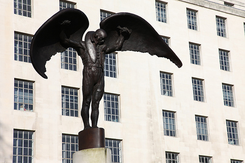 Fleet Air Arm memorial with angels wings looks like it can be taken either as a