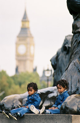 Tourists, Trafalgar Square LondonTourists love to sit on the lions in Trafalgar Square, London to have their picture taken.