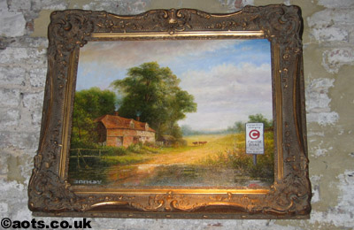 Santa's Ghetto 2004, Banksy - Congestion ZoneCongestion Zone sign in the countryside. Modified oil painting by Banksy on display in Santa's Ghetto in 2004. All photographs copyright artofthestate 2004 |