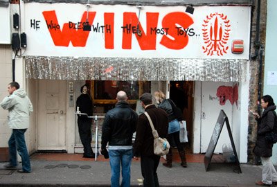 BANKSY Santas Ghetto 2005, 9 Berwick Street, Soho, LondonSanta's Ghetto - you've missed it for another year! Featured I Like Drawing, 3d, Banksy, Solo One, David Shrigley, Jamie Hewlett, Gee Vaucher, Stanley Donwood, Sickboy, Kelsey Brooks, Faile, Luke Egan (geddit)?, Chris Cunningham, Anthony Micallef, Space Invader, Mode 2, Paul Insect, Eine, Dface, Simon Munnery, Jo Rush, Polly Morgan, Cable Street Collective, Zeus and possibly you if you painted one of the blank canvases available. More pictures soon. All photographs copyright artofthestate 2005 / 2011 |