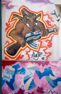 graffiti outside AK47 venue, Duisberg, Germany.More spray can art from the same venue. All photographs copyright artofthestate 2003 |