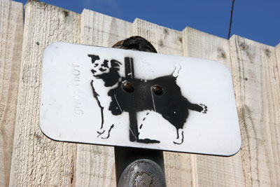 Ghostboy dog stencil, BristolAnother variant on the same theme - this time with a dog marking a post, on a post. All photographs copyright artofthestate 2007 |