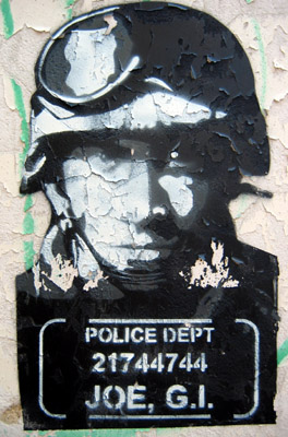 War criminal, Junkerade stencil. Feltham Town Centre - West LondonLarger than life soldiers head bu Junkerade - making a comment on the Iraq war according to StencilRevolution.com All photographs copyright artofthestate 2006 |
