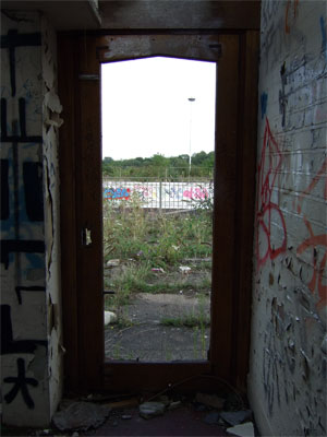 Uxbridge Lido Pool Changing Rooms DoorThe door they would have walked through is still there - albeit with the centre kicked out!All photographs copyright artofthestate 2006 / 2011 |