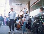 | "Decadence played two songs to an admittedly bemused crowd of shoppers and people standing in a line waiting to buy hamburgers. Piling into the van we made a quick getaway" | ||