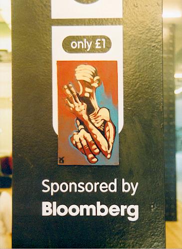 | Now I'm inside the Tate Modern and I'm thinking that there should be a change of featured artist. I've got nothing really against Tate Modern - if you've got a gallery you've got to fill it with something and it's a great building. It's just that I think there's too much missing. For example street art (for want of a better term) and graffiti don't seem to be represented. It may just be me but I'm thinking that they should be in there as a representative of a major style of the 20th century. Maybe the reason they are excluded is because you don't have to pay to look at them so they are considered worthless. Anyway, I thought I'd charge a pound a ticket and get Bloomberg to sponsor the event! Leaving it up for just a couple of minutes I saw a couple of people check out the advert then wander over to the inquiry desk to check on ticket availability for the adam neate audio tour. |
