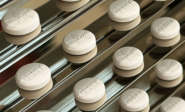 Detail from Damien Hirst ‘Obey’ – Glass, stainless steel, steel, aluminium, nickel and plaster pills