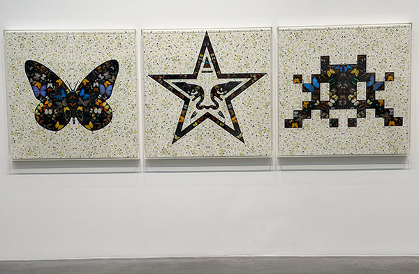 Triple Trouble – a collaboration show between Damien Hirst, Shepard Fairey and Invader. Newport Street Gallery, London