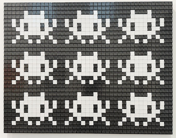 Damien Hirst, Invader ‘Forbidden Space’. Ceramic tiles, paint and scalpel blades on wood