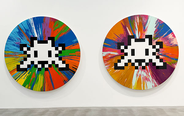 Damien Hirst, Invader – ‘Fucking Beautiful Spinvaded Painting’ and ‘Beautiful Invaded Purple Painting’