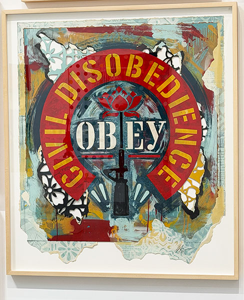 Shepard Fairey – Civil Disobedience. Mixed media (stencil, silkscreen and collage) on paper