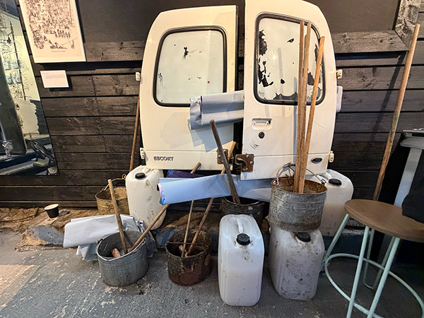 Tools of the trade, a typical flyposters van with buckets and brushes
