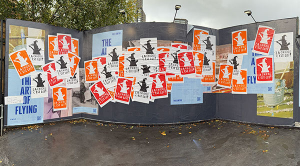 Posters for the Art of Flying show outside of Shoreditch High Street Tube station