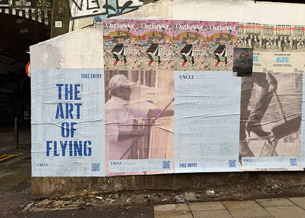 I didn’t see this one coming. I mean, it was fly posted, but you become a little immune to these things after a while unless they contain an element you recognise. The Art of Flying (congrats to the organisers on avoiding plays on the word ‘pasting’) tells the story of fly-posting over the last 150 years through an exhibition, a series of talks, and interactive elements, including screen printing and getting handy with a brush and bucket yourself.