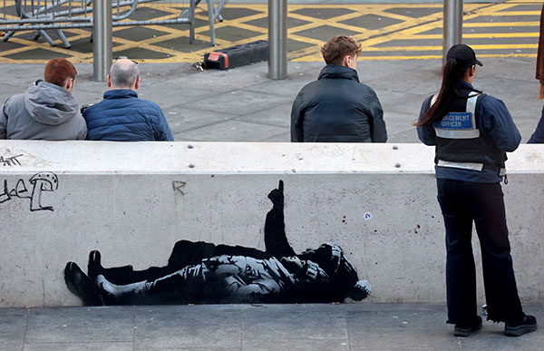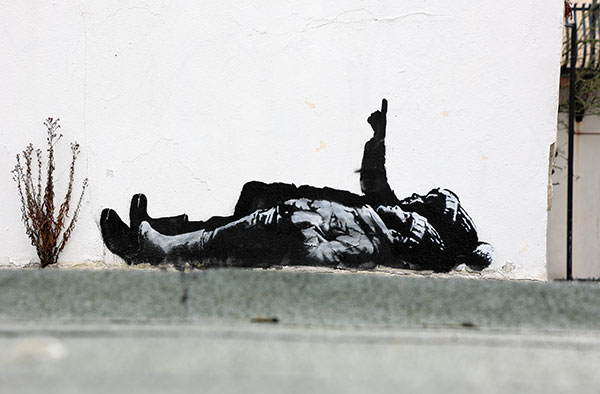 Two children lie on their backs, dressed in warm clothes, looking up at the night sky in two central London locations. The works, confirmed by Banksy on his Instagram, would appear to reference the plight of homeless children and are particularly poignant on the run up to Christmas with a cold snap on the way. They seem to reference the Oscar Wilde quote “We are all in the gutter, but some of us are looking at the stars.”