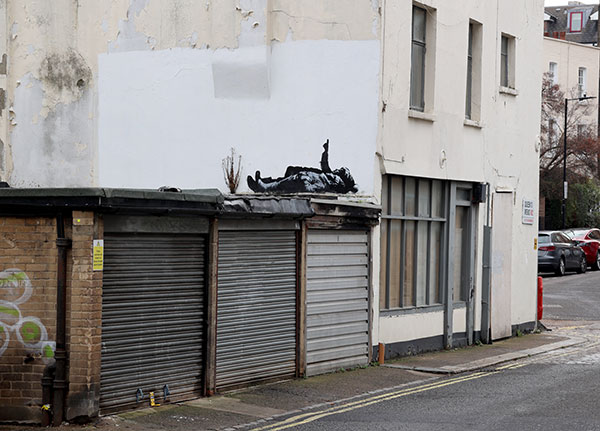 There were rumours of a second piece as early as Saturday but it wasn’t until the following Monday that a second location was confirmed. This time it was found in a quiet residential location above garages in the gentler surroundings of Bayswater. It was this piece that Banksy confirmed on his Instagram account. A night time shot taken from a specific spot revealed that the children were again looking up at a star above – in this case a red light on top of a crane in the background. Banksy locations are always chosen carefully but this one is a remarkable combination of hard scouting and vision.