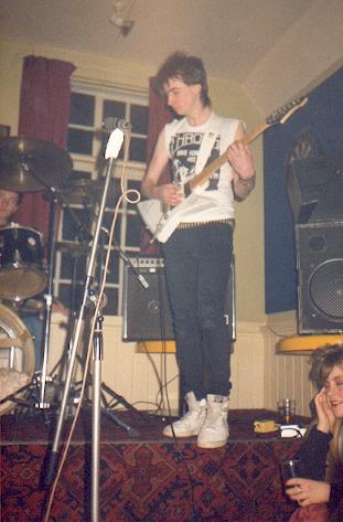 James Jenkins: Roped in on a free transfer from Maniac James couldn't help but add to the Throbs repertoire by extending our songs past the obligatory three chords. The young lady on the right found our set too much too handle and had fainted at the sound of our new found musical prowess. Incidentally, part of our rider demands in the latter years was for the stage to be carpeted in an antique style. |