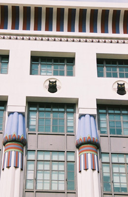 you look up high on the building you can see more cats complete with their