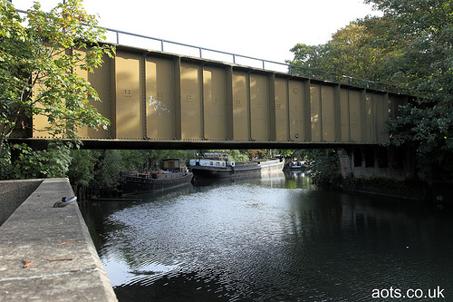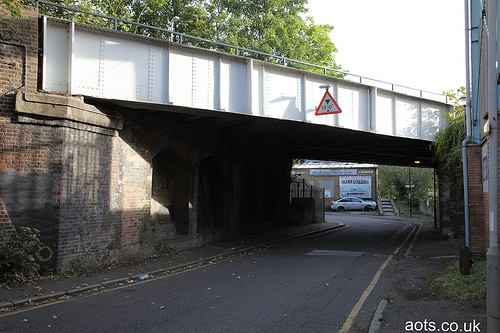Shortly after this another railway bridge now used for road traffic crosses a waterway leading to the Thames